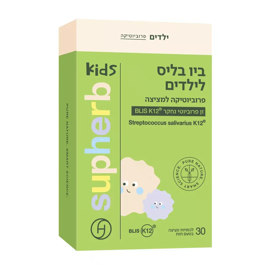 פרוביוטיקה לילדים ביו בליס בלכסניות מציצה, עם הזן הפרוביוטי הייחודי הנחקר ®S. salivarius K12 שתועלותיו בחיזוק ההגנה הטבעית הוכחו בעשרות מחקרים קליניים. הגיע הזמן שגם הילדים יהנו מהיתרונות הבריאותיים של ביו בליס, פרוביוטיקה למציצה בטעם תות שילדים אוהבים, ללא תוספת סוכר. מתאים במיוחד עכשיו לקראת עונת החורף. כשר חלבי.