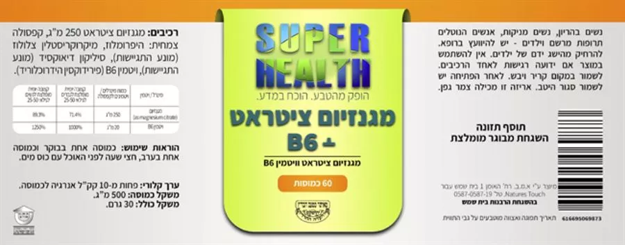 • מגנזיום  B6 סופר הלט 60 כמוסות
