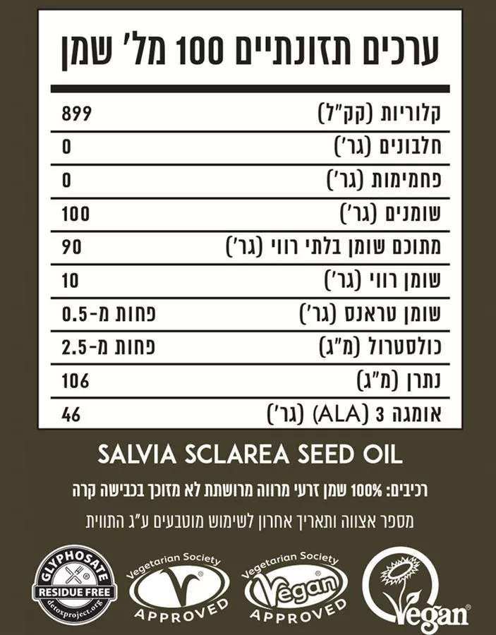 מרכיב אחד בלבד,שמן מרווה מרושתת ללא תוספות