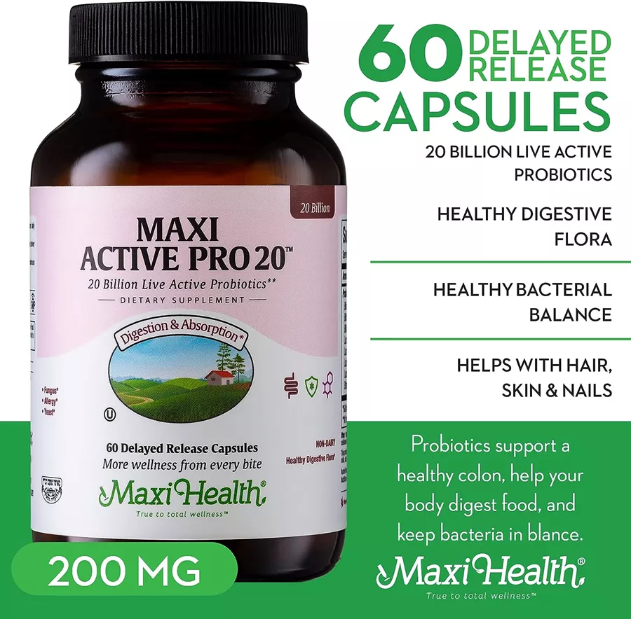 • מקסי הלט פרוביוטיקה אקטיב פרו 20 מליארד 60 כמוסות | Maxi health Active Pro 20 60 Caps